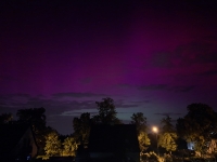 k nám doletěl nadprůměrně mohutný sluneční vítr, který způsobil polární záři slabě pozorovatelnou
