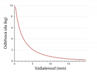 V prílohe krivka poklesu odtrhovej sily magnetu v závislosti na vzdialenosti: