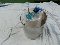 Zdravím všechny. Zhotovil jsem si jednoduchý udělátko na inhalování vodíku, viz fotky. Dávám tam SS napětí 110V, jednocestně usměrněný. Z důvodu, že se to nepije, použil jsem místo drahých kovů na elektrody jen potravinářskou nerez. Má to drobný nedostatek, protože jak elektrolýza pokračuje, tak se do elektrolytu dostávají rozpuštěné molekuly železa (je v každé nerezi, voda hnědne) což mě nevadí, protože se to nepije, ale vdechuje, a tím se značně urychluje proces elektrolýzy, hřeje se to až na cca 45C, po asi 15 minutách stoupne proud z 1A až na 6 až 8A. Je to sice drobná nevýhoda, je to ale řešitelné, lze použít stříbro na - pólu a platinu na +pólu, jenže to legraci řádně prodraží. Při napouštění do systému hadičkou ústy vytáhnu vzduch až nahoru, zapnu proud a hromadící se vodík vytlačuje kyselou vodu do dřezu nebo vandlíku. Po asi 10 až 15 minutách podle toho kolik chceme vodíku k dýchání vyrobit, vytáhnu hadičku ze sklenice s vodou strčím ji do úst a postupným vdechváním několikrát za sebou vodík vydýchám. Za 15 minut se v nádobě dnem vzhůru nahromadí asi 0,5 až 0,6 litrů vodíku, který postupným vdechování a vydechováním plastovou hadičkou dostanu do plic. Mám z toho dobrý pocit, např kyselost moči se po 10 minutách změní z pH6,5 na pH 7,5 zmizela únava po jídle, večer mě netrápí ospalost, mám lepší trávení a dalších mnoho kladných ukazatelů. Myslím, že je celkový příjem vodíku intenzivnější, zvlášť když ho zopakuju 3x denně. Určitě bych musel vypít moc a moc sklenic s klasicky nasycenou vodou abych do sebe dostal stejné množství vodíku. Bohužel jsem se nikde nedočetl ani tady na fóru a nezjistil kolik denní dávky vodíku je ještě v normě, co už je přes čáru, jestli teda vůbec je nějaká velká dávka škodlivá. Výhoda je také ta, že člověk neběhá neustále na malou. Mám dost ale žízeň protože to inhalování asi člověka odvodňuje. Kdyby náhodou někdo zjistil kolik vodíku je dobrý vdechovat, dejte vědět. Když by si to někdo chtěl podobně udělat, nestyďte se zeptat, poradím. Koukněte na http://www.molekularnivodik.cz/studie/