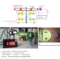 Impulsy vytváří M na Ro při sepnutí předstihu (Magnetický spínač s citlivým kontaktem )dle toho jaký potřebujeme pro tu kterou ELEKTRONIKU (vstup).Jako Elektroniku -Použil jsem upravený 4 mosfet od ČÍ'NANA(používám zdroj 12V -20W na dlohodobé zkoušení baterii ) ,jelikož je mnoho možností jak spínání tak čidel .Optika je náročná při řešení (rychlé otáčky -malý R).Při správném předstihu dojde k ODPUZU mezi M ag Ro a pohonem a následnému pootočení .Krytky řeší spolu s příchytkami pevný celek ,aby M nelítaly při vysokých ot (200ot/min ) a při několika g váhy se chovají jako vystřelené náboje (nejedna odstředivá síla ).