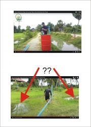 Nevím přesně, nicméně jde o rýžové pole a ta musí být vždy zaplavena vodou ... celá... takže má-li někde prohlubně, které ještě drží vodu, neznamená to, že je té vody dost na celém poli a už vůbec ne, že z těch louží může vodu brát. No a dost vody se snad dá posoudit i podle toho, že na těch polích pěstují zároveň i ryby. Definitivně tedy alespoň a asi víc než deset centimetrů k hladině nad půdou. Rýžová pole jsou de facto mělké rybníky. Zrovna tohle video je neprůkazné, protože jak na to tak čumím, kouda po kousku, pumpujou nejspíš s kopce.
