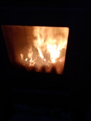 V příloze máte pár fotek krbu jak hoří ostrým plamenem v celém prostoru ohniště.