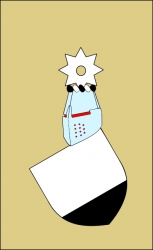 284 - Hvězda heroltská kovová je v červeném štítě stříbrná hvězda, jako obecná figura stříbrná hvězda nikoli nebeská, ale ostruhová a tedy s malým otvorem, v klenotu také jedna, i když bych očekával spíš dvě než jenom jednu.