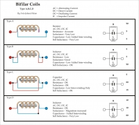 A to máš vyzkoušené v praxi? kdysi dávno jsem měl namotaou takto bifilární cívku, tedy jedno vinutí ve směru a druhé protisměru hodinových ručiček. Pokud je spojíš do série, jsou 2 možnosti - buď zmiňovaný tesla konec 1. se začátkem 2. , nebo konec 1. s koncem druhýho - to se ale proudy vyruší.