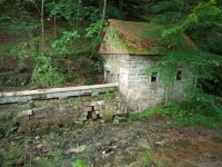 Vlevo je hráz pivovarského rybníka, odkud se brala voda korýtkem.