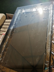 Protože jsem si mohl prohlédnout konkurenci, chtěl jsem se vyvarovat jejich chyb. Proto jsem si nejprve termokamerou prohlédl solarventi...Kovovým rámem a zády se ztrácela spousta tepla. První panel jsem proto udělal z polystyrenu a vnitřek vybavil termofolií, dal jsem ohřívací (topný) panel z oc. plechu na podložky do prostoru a zakryl ditermem...a hodil to do korpusu z dřevotřísky.) Bohužel to vážilo 27 kg...Ale z 0,5m2 to dávalo cca 300W a na výfuku to dávalo 68°C z 9 nasávaných..