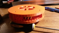 Celý natěšený jsem se pustil do sestavování rotoru. Jsa dbalý zásad práce s magnety, dal jsem si hezky polovinu rotoru na kovovou podložku, protože jednotlivé magnety jdou k sobě stejnými póly a zprvu mi občas některý(jak očekávané ) vyskočil ze své jamky a vydal se do prostoru. Nuže na kovové podložce to hezky šlo a odsýpalo jeden po druhém. Všech 136 kousků zapadlo přiklopil jsem vršek a chtěl to sešroubovat. No hned jsem začal přemýšlet, jestli jsem dostatečně povečeřel, protože mě opustily veškeré síly. Pak jsem mrkl na parametry výrobcem dané a hned jsem byl doma. Jeden každý má mít sílu k železu 2.7kg. Při paralelním spojení se předpokládám ta síla opravdu sčítá, takže jsem měl na stole OBLUDU se silou 367Kg k železu. To asi fakt nešlo utrhnout. Ani sesmeknout do boku. Tak jsem zase postupně odebíral, až jsem se dopracoval k manipulaci schopné konfiguraci 4x7 magnetů = 75kg, to už šlo sesmeknout do boku.