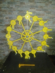 | Tak, jsem koněčně namontoloval celý věnec. Ale i když bych dosadil všechna závaží tak i kdyby zůstalo něco navíc tak to pohltí konstrukce a ztráty. Celá konstrukce ve své velikosti a tenkosti již slušně pruží, moc velký zuby na pastorkách, tím i vznik další vůle.