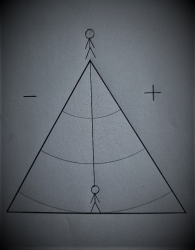 Trojúhelník (pyramida) představuje hru, ve které se ocitáme. Figurky jsme my.